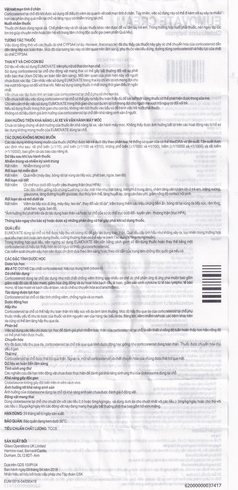 Thành phần của Kem Eumovate Cream