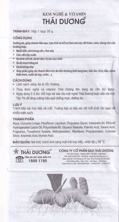 Thành phần kem nghệ và vitamin Thái Dương Nano Bạc
