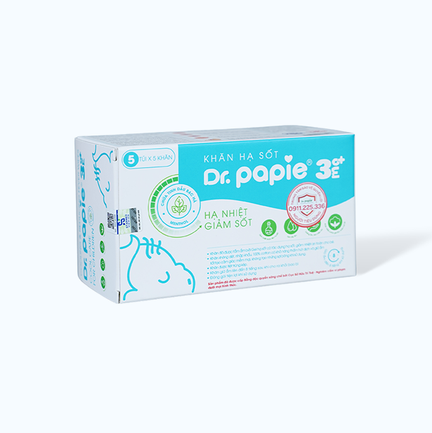 Khăn hạ sốt Dr Papie 3M0+ (Hộp 5 túi x 5 khăn) là gì?