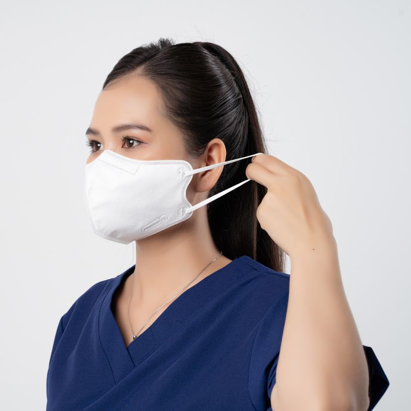 - Khi lấy khẩu trang, dùng tay lấy dây đeo, tránh chạm vào mặt trong.