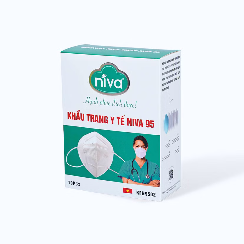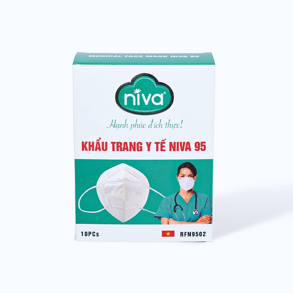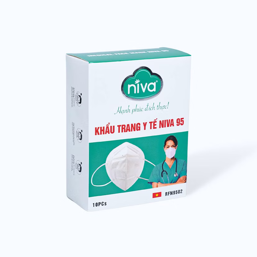 Khẩu trang NIVA tiêu chuẩn N95 4 lớp giúp ngăn vi khuẩn, khói, bụi, dầu, giọt bắn xâm nhập (10 cái)SẢN PHẨM