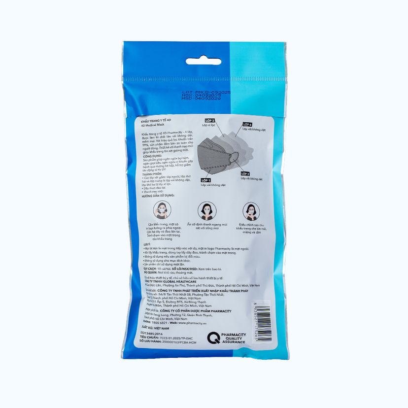 Khẩu trang y tế 4D Pharmacity (Gói 10 cái) màu đen - 4 lớpKhẩu trang y tế 4D Pharmacity (Gói 10 cái) màu đen – 4 lớp