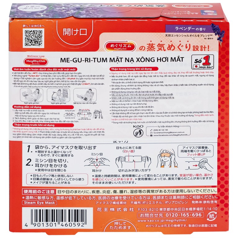 Mặt nạ xông hơi mắt MegRhythm KAO hương hoa oải hương dễ chịu, thư giãn đôi mắt (5 miếng)SẢN PHẨM