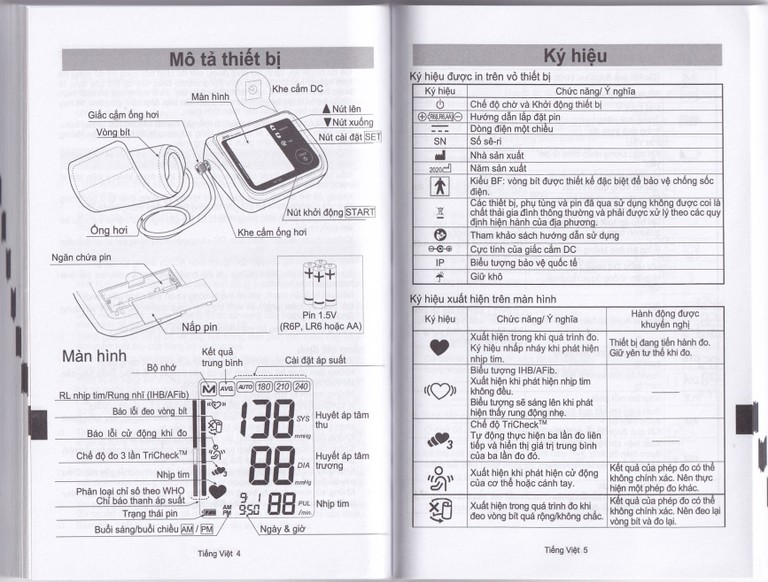 | Huyết áp tâm thu: 60 – 279 mmHg | |