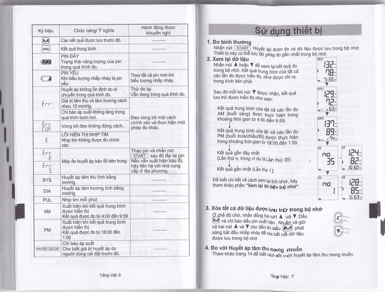 - Nếu thiết bị phát hiện tình trạng bất thường, thiết bị sẽ dừng phép đo và hiển thị ký hiệu lỗi.