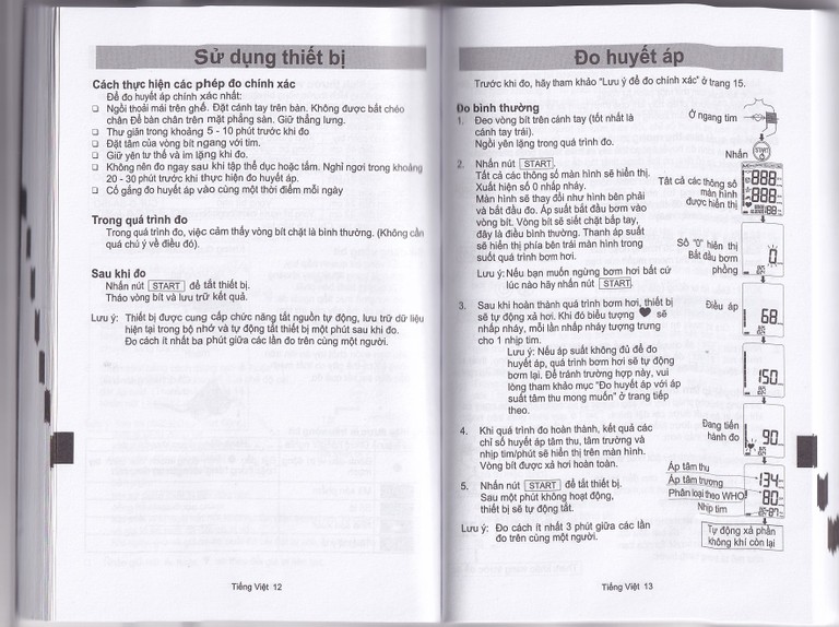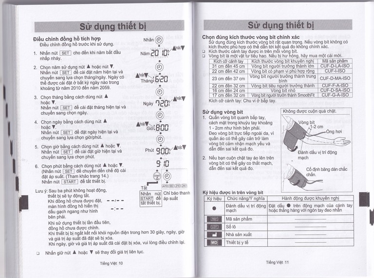 1. Đeo vòng bít trên cánh tay (nên đeo ở tay trái). Ngồi yên trong suốt quá trình đo.