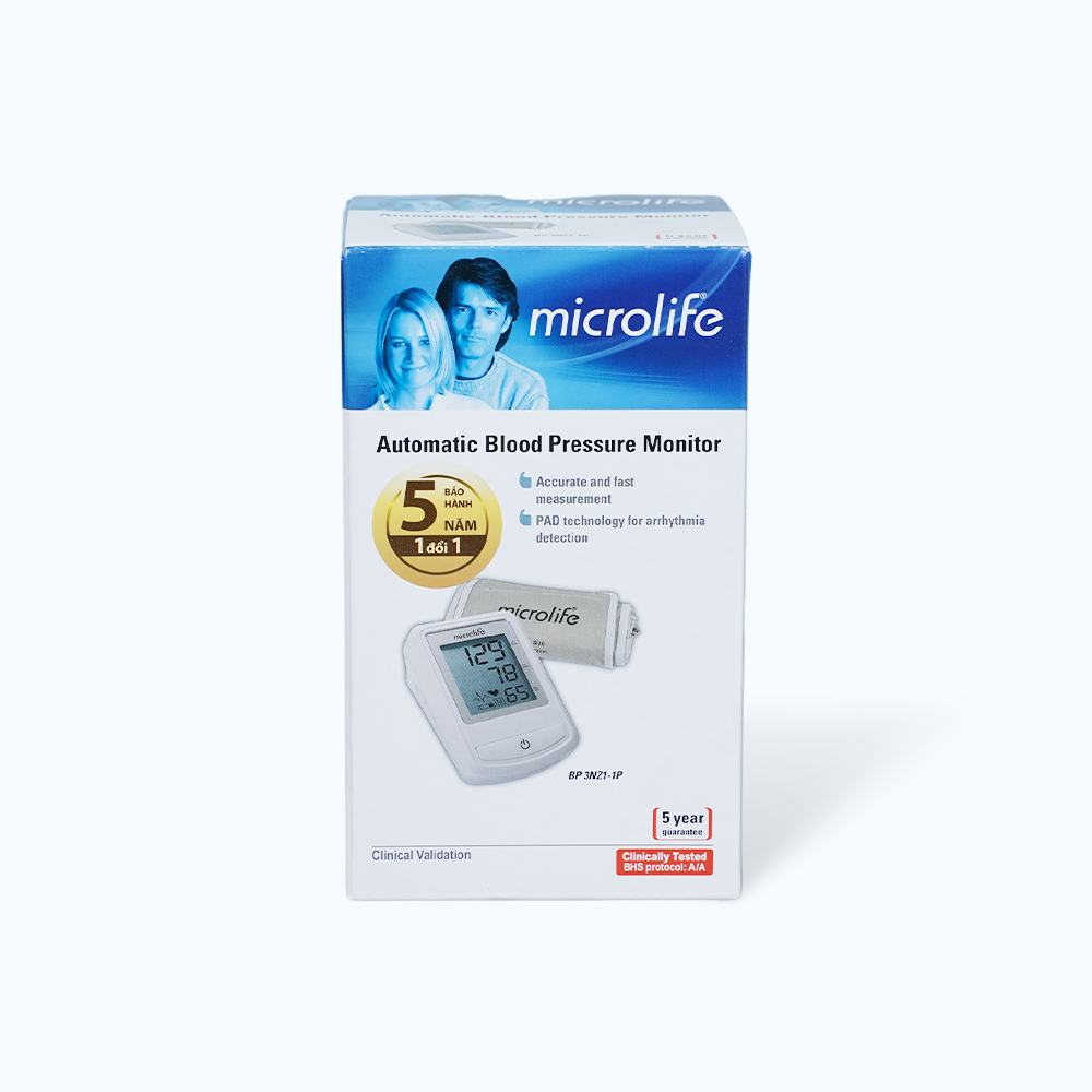Máy đo huyết áp bắp tay tự động MICROLIFE BP 3NZ1-1P, hỗ trợ tầm soát nhịp tim (hộp 1 cái)