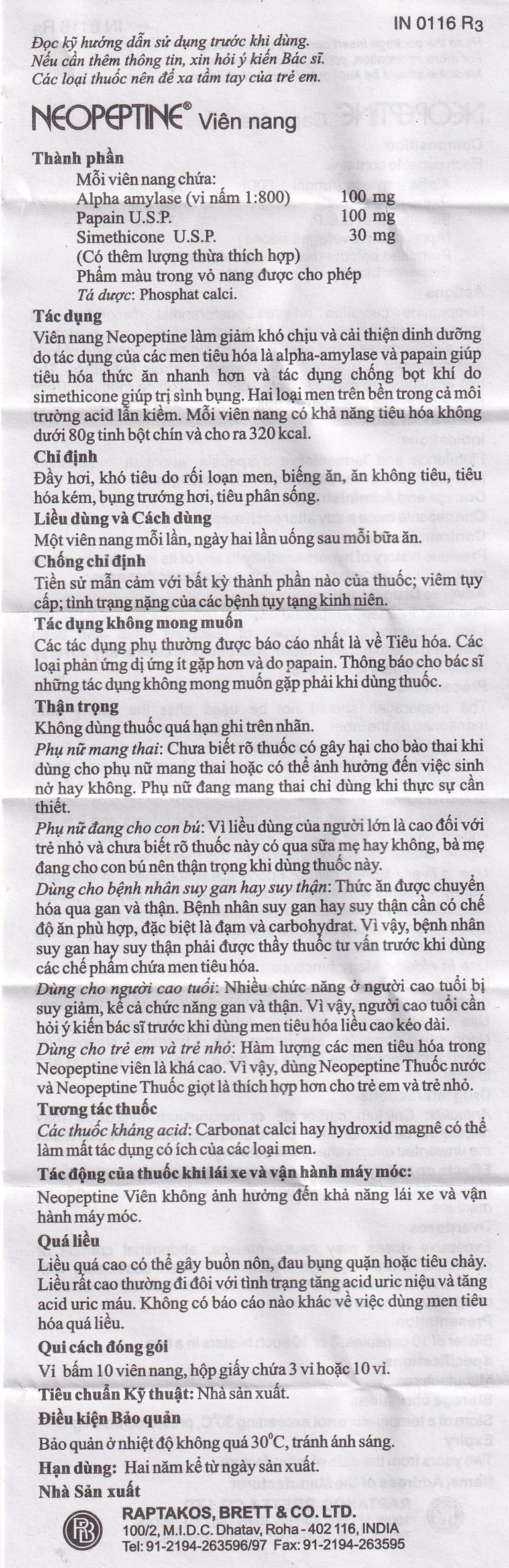 Thành phần của Men tiêu hóa Neopeptine
