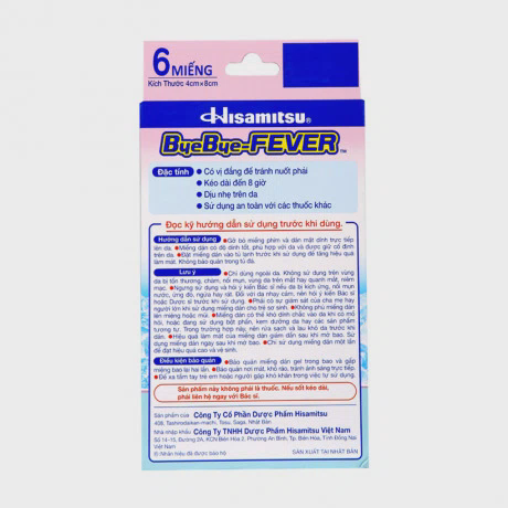 Miếng dán hạ sốt cho trẻ sơ sinh Hisamitsu Bye Bye-Fever (2 miếng/gói)