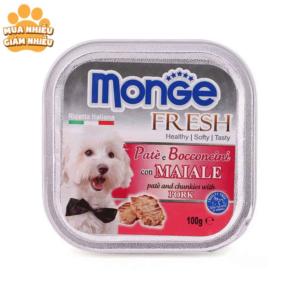 Pate Monge Dog Fresh vị thịt heo là thức ăn ướt siêu cao cấp dành cho chó trưởng thành mọi giống loài, được sản xuất tại Ý. Sản phẩm không chứa ngũ cốc với kết cấu pate mềm mịn, lý tưởng cho chó kén ăn, giúp hỗ trợ một chế độ ăn uống lành mạnh và dễ tiêu hóa. Thành phần chính bao gồm 80% thịt và các sản phẩm từ thịt, với 10% là thịt heo tươi cùng các khoáng chất, cam kết không có chất bảo quản.