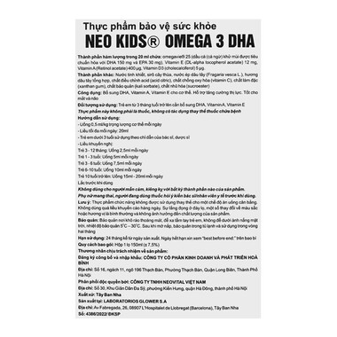 Trong mỗi 20ml Neo Kids Omega 3 DHA có chứa: