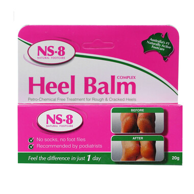 NS-8 Heel Balm Complex là sản phẩm chăm sóc gót chân đến từ Úc, giúp giảm tình trạng da khô ráp, nứt nẻ, chai sạn. Sản phẩm chứa thành phần tự nhiên giàu dưỡng chất, giúp dưỡng ẩm sâu, làm mềm da, loại bỏ tế bào chết và hạn chế vi khuẩn xâm nhập vào vùng da tổn thương. Với công thức không chứa hóa chất gây hại, NS-8 phù hợp cho mọi loại da, kể cả da nhạy cảm