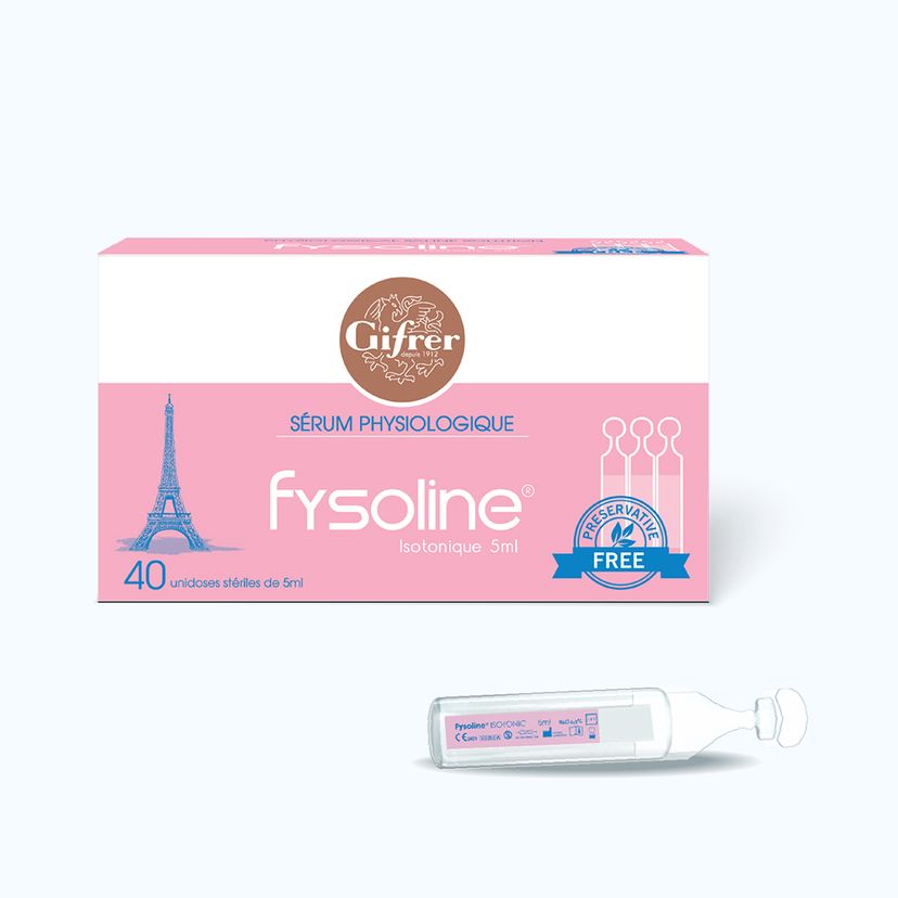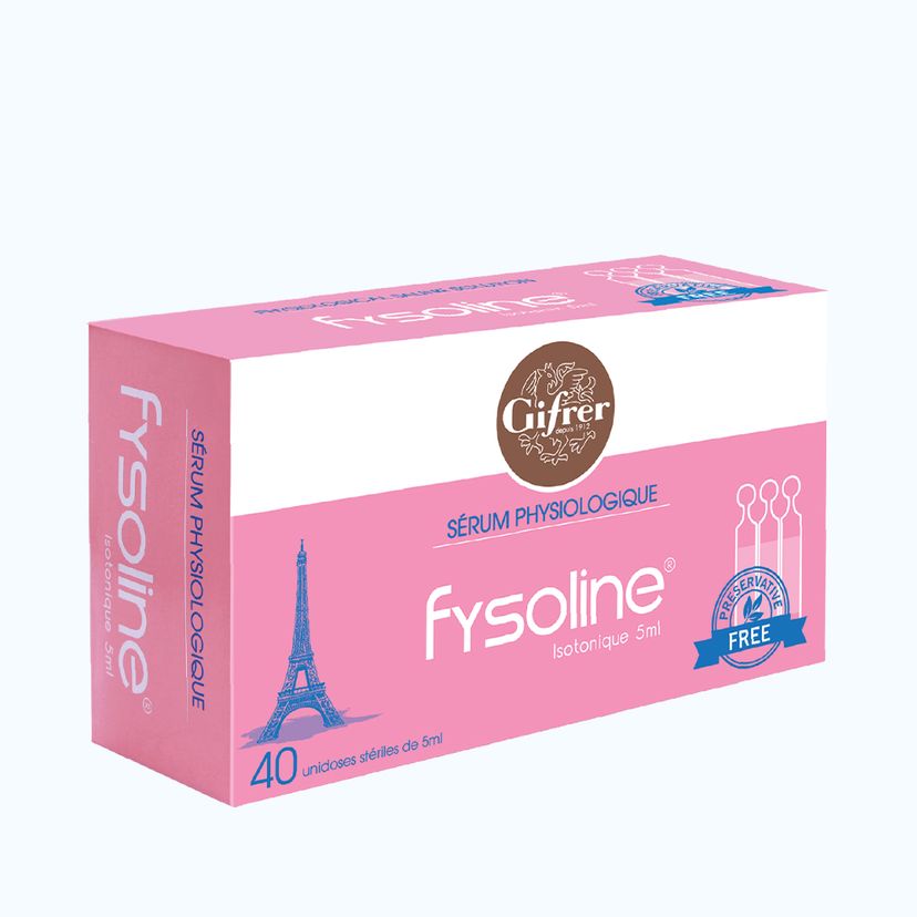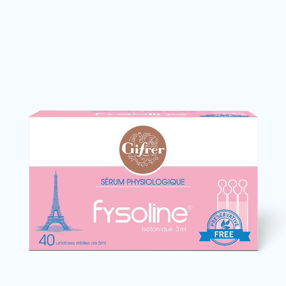 Nước muối sinh lý đẳng trương FYSOLINE Isotonique Gifrer là sản phẩm dùng để làm sạch mắt, mũi và răng miệng cho trẻ nhỏ, trẻ sơ sinh và người lớn. Sản phẩm không chứa chất bảo quản và vô trùng loại A chuyên biệt cho trẻ sơ sinh và trẻ nhỏ .