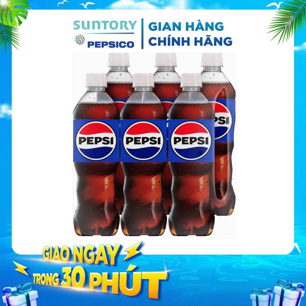 Nước ngọt Pepsi Cola là đồ uống có ga hương cola cổ điển được đóng trong chai PET 600 ml. Sản phẩm mang lại hương vị Pepsi đặc trưng và có màu nước cola sẫm. Sản phẩm được sản xuất và phân phối tại Việt Nam bởi Suntory PepsiCo Vietnam và sở hữu nhãn xanh dương nổi bật kèm logo ba màu đỏ, trắng và xanh lam. Thức uống này đáp ứng nhu cầu giải khát và thưởng thức trong các bữa ăn hằng ngày.