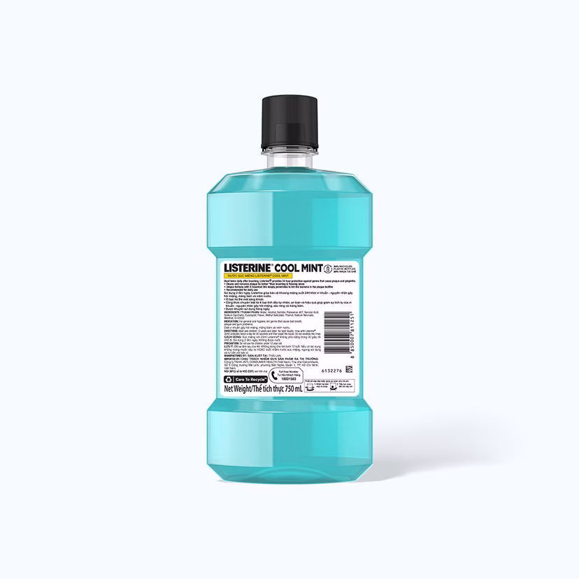 Nước súc miệng Listerine Cool Mint là sản phẩm giúp làm sạch sâu, bảo vệ răng và nướu, đồng thời mang lại hơi thở thơm mát với hương bạc hà dễ chịu. Sản phẩm này diệt khuẩn hiệu quả, giảm nguy cơ mắc bệnh về răng miệng như sâu răng và viêm nướu. Sử dụng đều đặn giúp duy trì vệ sinh răng miệng tối ưu và hơi thở luôn tươi mới.