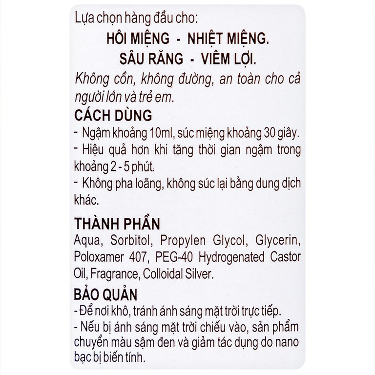 • Không nên pha loãng nước súc miệng khi không có chỉ định.