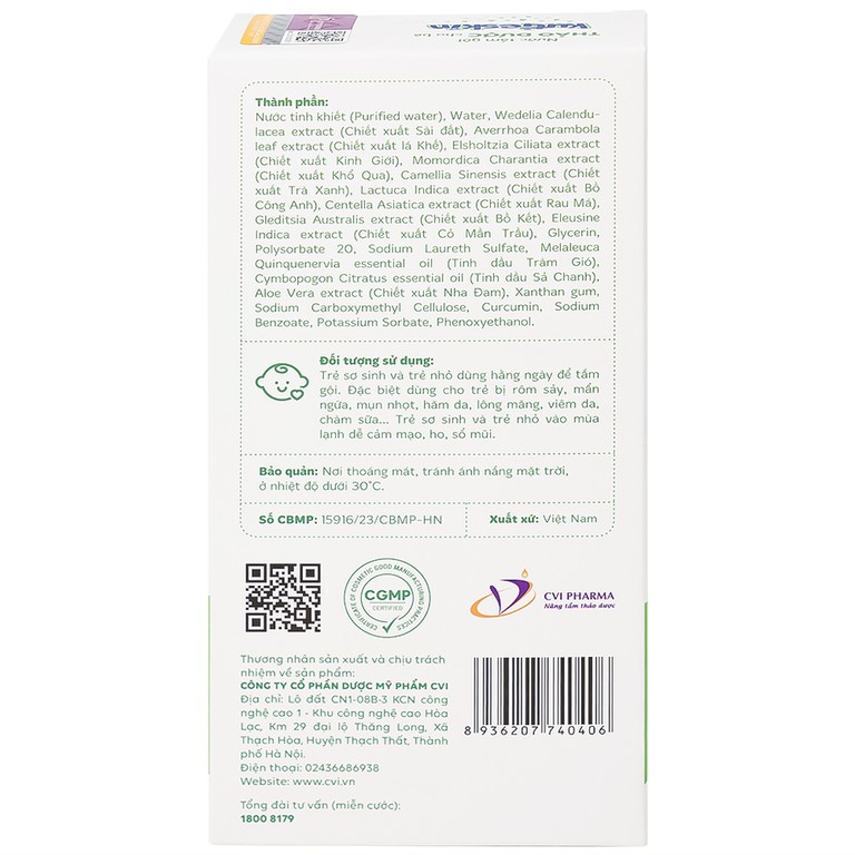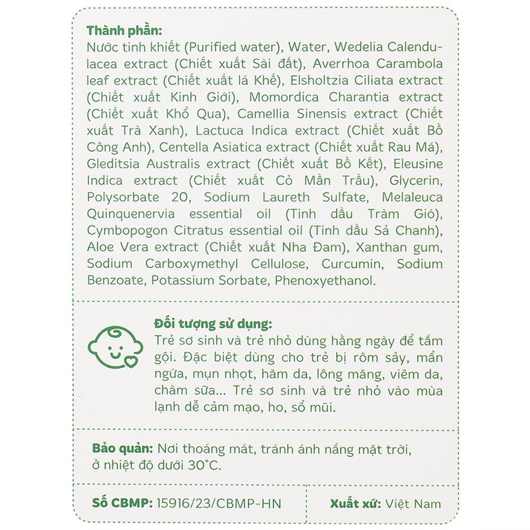 - Công thức Nano Curcumin kết hợp 12 loại thảo dược lành tính cho da bé.