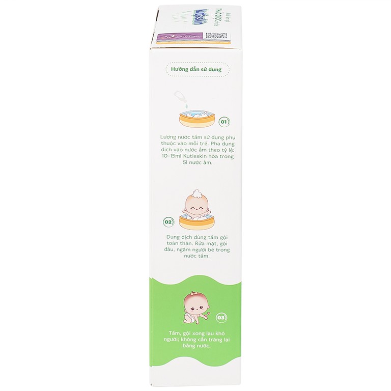 Kết hợp các chiết xuất từ khổ qua, trà xanh, sài đất, rau má, kinh giới, nha đam… Kutieskin mang đến cảm giác mát dịu sau khi tắm. Sản phẩm không chứa xà phòng, không cay mắt, không cần tráng lại sau khi dùng – đặc biệt tiện lợi cho ba mẹ khi chăm sóc trẻ sơ sinh.