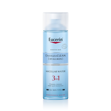 - Eucerin DermatoClean Micellar Water 3in1 đảm nhiệm cả 3 bước căn bản trong chu trình chăm sóc da là tẩy trang, rửa mặt và cân bằng da. Công nghệ micellar nhẹ nhàng và triệt để lấy đi tạp chất sâu trong lỗ chân lông, vừa bổ sung Hyaluronic Acid làm dịu và dưỡng ẩm tức thì cho da. Đảm bảo da luôn giữ được trạng thái cân bằng trong quá trình làm sạch. Sản phẩm thích hợp sử dụng hằng ngày cho da nhạy cảm.