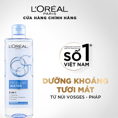 Nước Tẩy Trang L’Oréal là dòng sản phẩm tẩy trang dạng nước đến từ thương hiệu L’Oreal Paris, được ứng dụng công nghệ Micellar dịu nhẹ giúp làm sạch da, lấy đi bụi bẩn, dầu thừacặn trang điểm chỉ trong một bước, mang lại làn da thông thoáng, mềm mượt mà không hề khô căng.