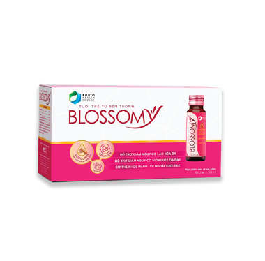 Blossomy là thực phẩm bảo vệ sức khỏe, phối hợp Curcumin tự nhiên từ nghệ vàng với Collagen cùng các chất Lactium, Vitamin B1, Vitamin B6 và Mật Ong hình thành nên công thức giúp da sáng đẹp, căng mịn, trẻ trung và làm lành giảm viêm loét dạ dày.