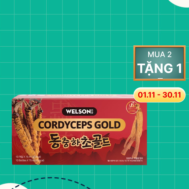 Nước Uống Hồng Sâm Đông Trùng Hạ Thảo Hàn Quốc – Welson Cordyceps Gold (Hộp 10 chai)