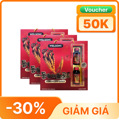 Nước Uống Hồng Sâm Đông Trùng Hạ Thảo Welson Cordyceps Gold (Hộp 06 chai)Nước Uống Hồng Sâm Đông Trùng Hạ Thảo Welson Cordyceps Gold (Hộp 06 chai)
