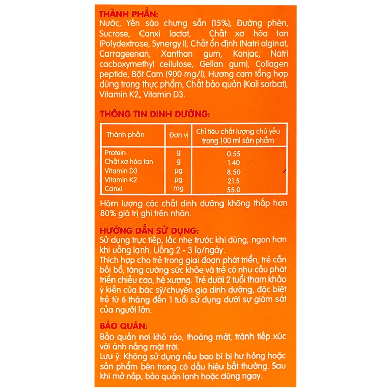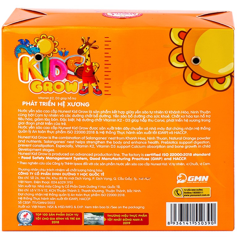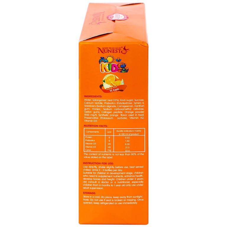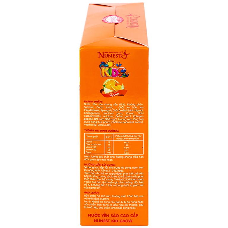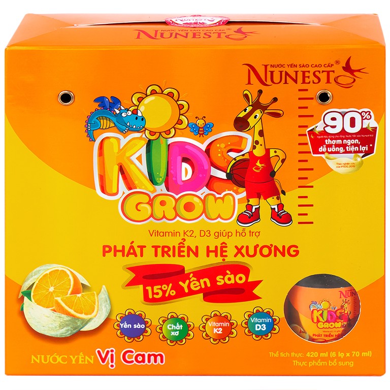 Nước yến sào cao cấp cho trẻ em Nunest Kid Grow vị cam thích hợp cho trẻ trong giai đoạn phát triển, trẻ cần bồi bổ, tăng cường sức khỏe và trẻ có nhu cầu phát triển chiều cao, hệ xương.