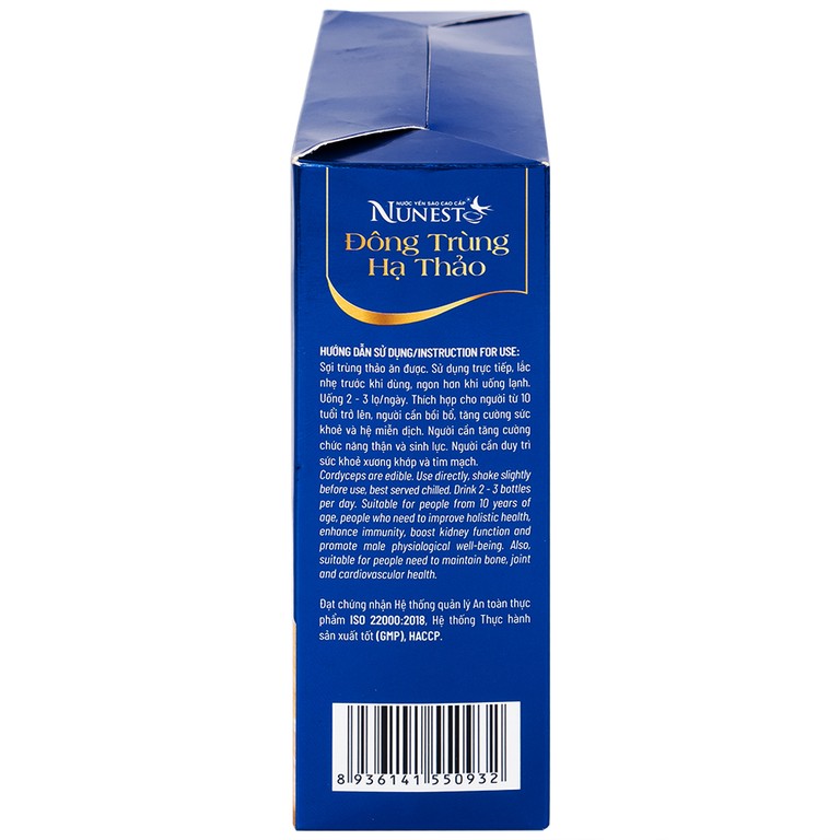 Nước yến sào cao cấp Nunest đông trùng hạ thảo bổ dưỡng cho sức khoẻ với tổ yến 100% tự nhiên. Đông Trùng Hạ Thảo giúp tăng cường miễn dịch, bổ thận, tăng cường sinh lực. Collagen type II, Chondroitin, vitamin K2 tốt cho xương khớp. Vitamin K2 giúp duy trì sức khoẻ hệ tim mạch.