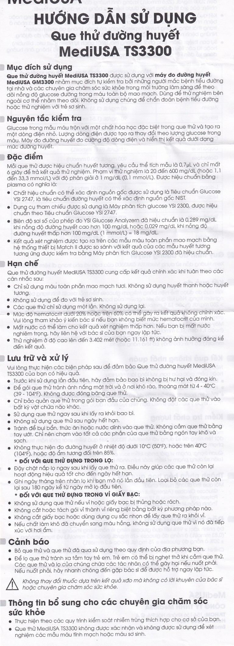 Que thử đường huyết MediUSA TS3300 sử dụng cùng máy đo đường huyết MediUSA GM3300 (50 que)SẢN PHẨM