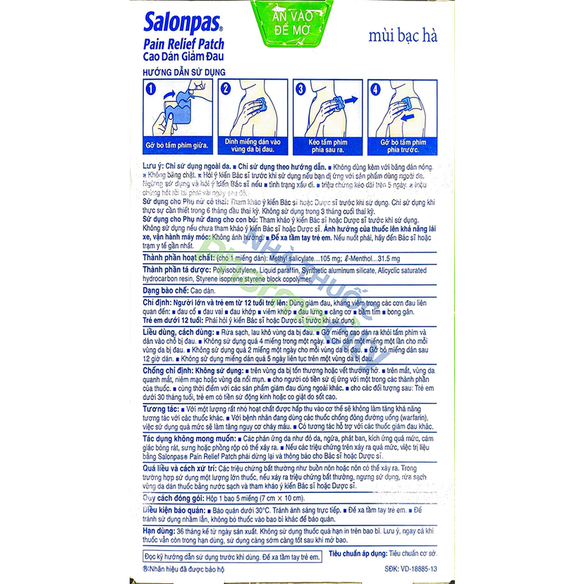 Salonpas pain relief patch – Cao dán giảm đau mạnh, tác dụng kéo dài (5 miếng/hộp)Salonpas pain relief patch – Cao dán giảm đau mạnh, tác dụng kéo dài (5 miếng/hộp)