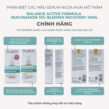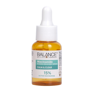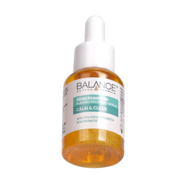 Tinh chất ngăn mụn mờ thâm Balance Active Formula Niacinamide Blemish Recovery Serum là một loại tinh chất nhẹ dạng nước với 15% Niacinamide – một loại Vitamin B3 tự nhiên giúp giảm dầu thừa, giúp lỗ chân lông được thu nhỏ lại. Đồng thời, làm giảm các nhược điểm trên da và làm mờ vết thâm, giúp cải thiện kết cấu da và khuyến khích làn da khỏe mạnh.