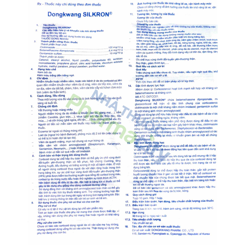 Thành phần thuốc dùng ngoài da Silkron