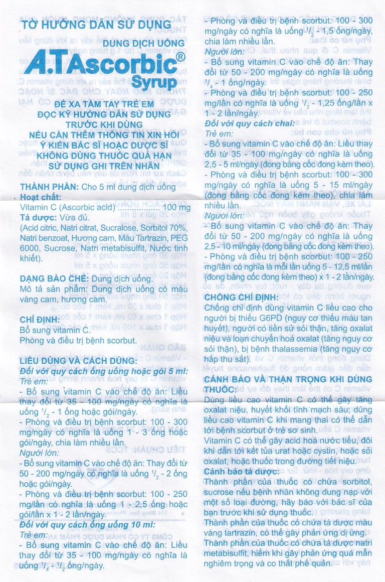 Thuốc A.T Ascorbic syrup An Thiên 30 ống X 10ml – dung dịch uống được chỉ định dùng trong các trường hợp sau: