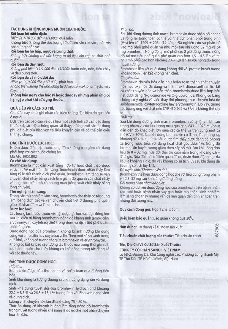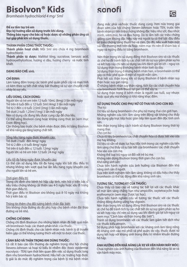• Lưu ý khi sử dụng: Trong điều trị các bệnh hô hấp cấp tính, nếu triệu chứng không cải thiện sau 4 – 5 ngày hoặc có dấu hiệu xấu đi trong quá trình dùng thuốc, cần tham khảo ý kiến bác sĩ. Thời gian sử dụng Bisolvon dạng siro không nên vượt quá 8 – 10 ngày nếu không có chỉ định từ bác sĩ.