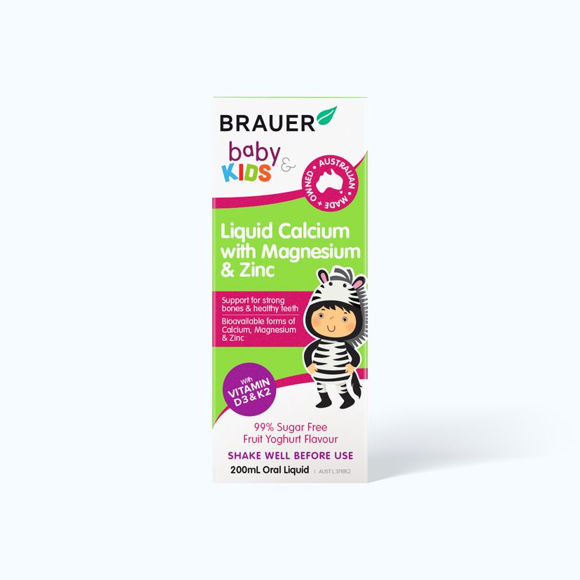Siro BRAUER Kids Liquid Calcium with Magnesium & Zinc hỗ trợ xương & răng chắc khỏe (200ml)