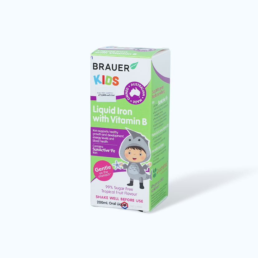 Brauer Kids Liquid Iron With Vitamin B được phát triển đặc biệt với SunActive ® Fe. Đây là một dạng sắt dễ hấp thu và có tác dụng êm dịu đối với dạ dày. Brauer cũng đã nghiên cứu hương vị sản phẩm với vị trái cây nhiệt đới thơm ngon, mang đến cảm giác dễ chịu và thích thú khi trẻ sử dụng.