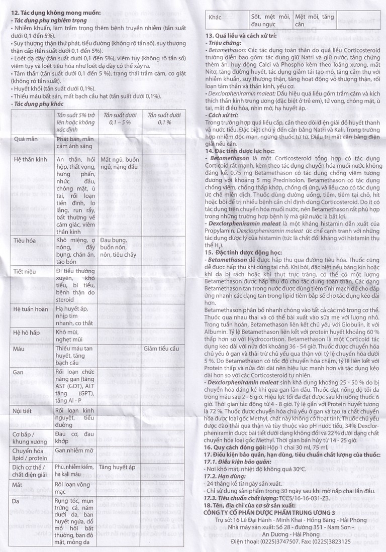 Mẫn cảm với Betamethason hoặc các Corticoid khác và Dexclorpheniramin.
