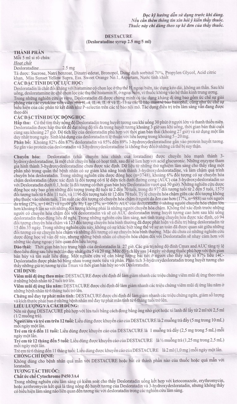 Destacure được chi định để làm giảm nhanh các triệu chứng viêm mũi dị ứng theo mùa ở những bệnh nhân từ 2 tuổi trở lên.