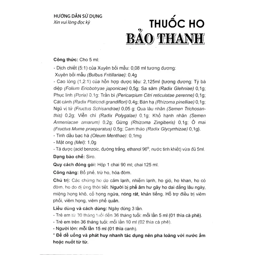 Trước khi sử dụng Siro ho Bảo Thanh bạn cần đọc kỹ hướng dẫn sử dụng và tham khảo thông tin bên dưới.