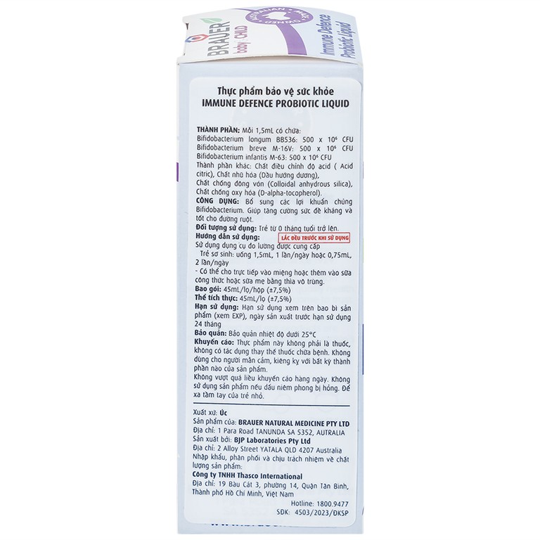 Brauer Baby & Child Immune Defence Probiotic Liquid bổ sung các lợi khuẩn chủng Bifidobacterium.
