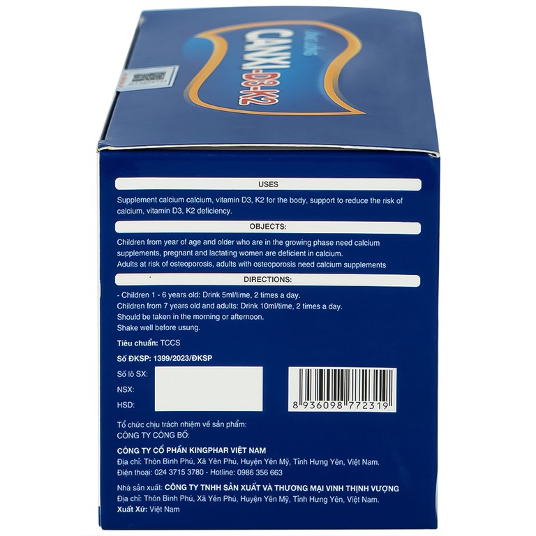Siro ống uống Canxi-D3-K2 5ml Kingphar bổ sung canxi & vitamin D3 cho cơ thể (6 vỉ x 5 ống)SẢN PHẨM