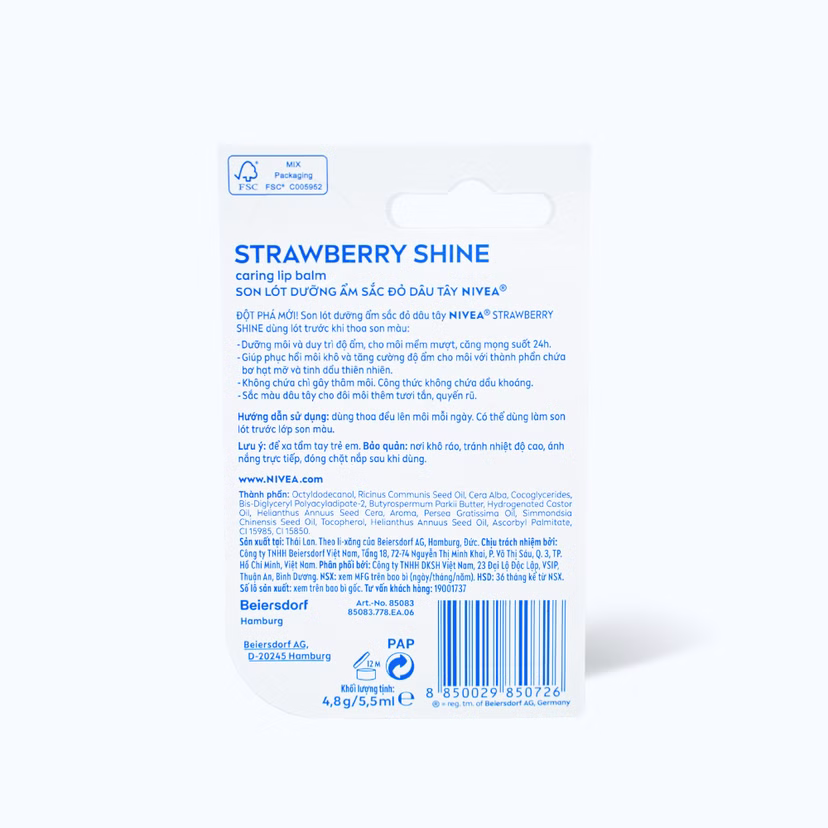 Thành phần Son Dưỡng Môi NIVEA Strawberry Shine Hương Dâu