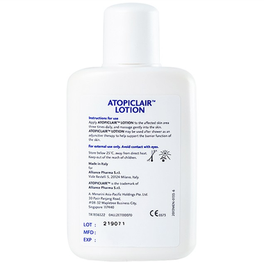 • Atopiclair™ Lotion hỗ trợ hồi phục hàng rào bảo vệ với khả năng khôi phục độ dầu tự nhiên trên da, nhờ đó giúp bảo vệ da khỏe mạnh, giảm kích ứng khó chịu và duy trì độ ẩm da đến 72 giờ.