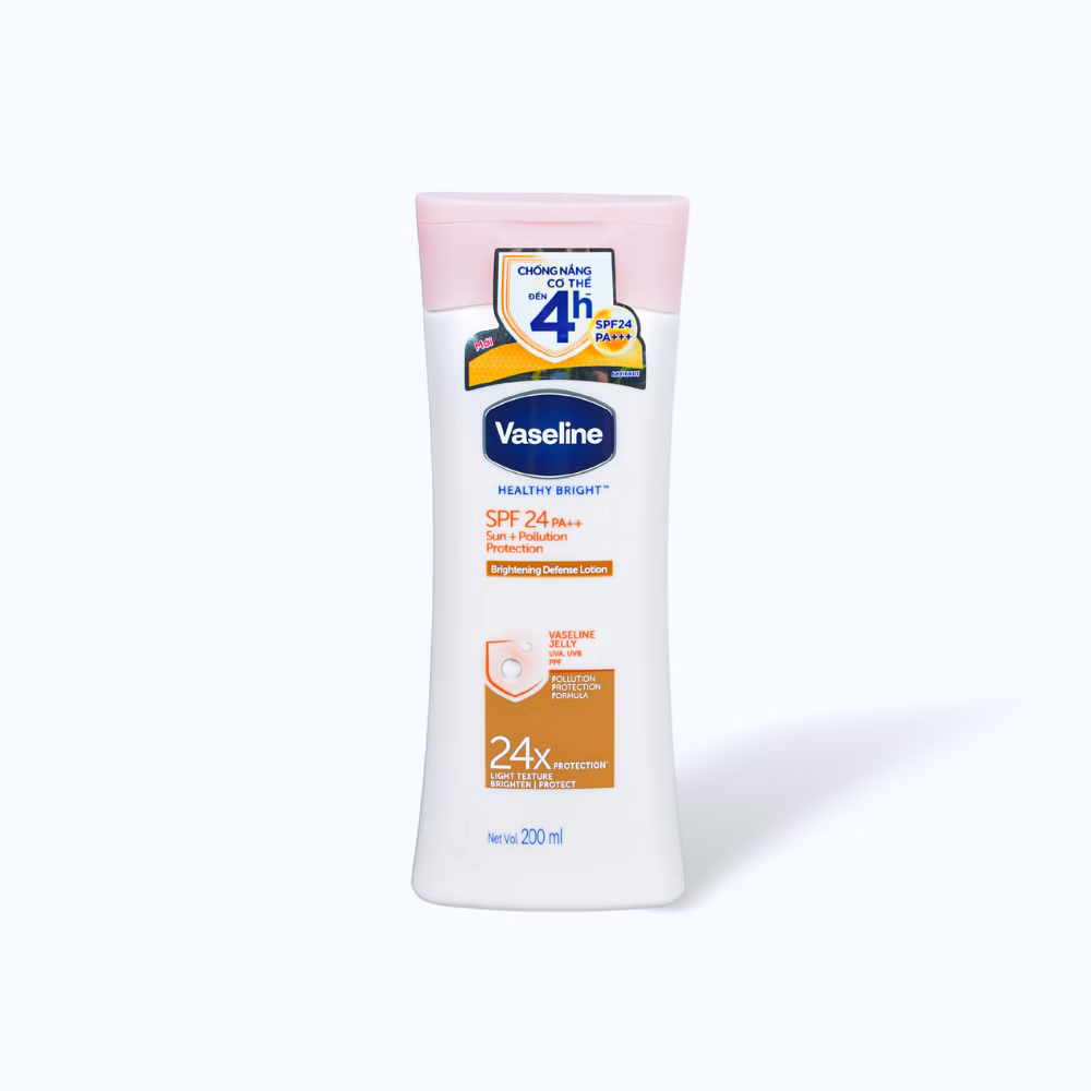 Sữa Dưỡng Da Toàn Thân VASELINE HEALTHY BRIGHT SPF24 PA++ giúp làm sáng và giúp chống nắng cho da 200mlSữa Dưỡng Da Toàn Thân VASELINE HEALTHY BRIGHT SPF24 PA++ giúp làm sáng và giúp chống nắng cho da 200ml