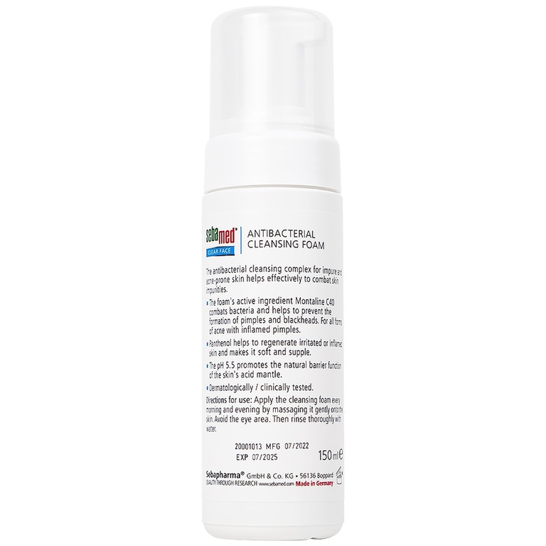 Sữa rửa mặt Clear Face Antibacterial Cleansing Foam Sebamed giúp làm sạch bụi bẩn, bã nhờn và tế bào da chết (150ml)SẢN PHẨM