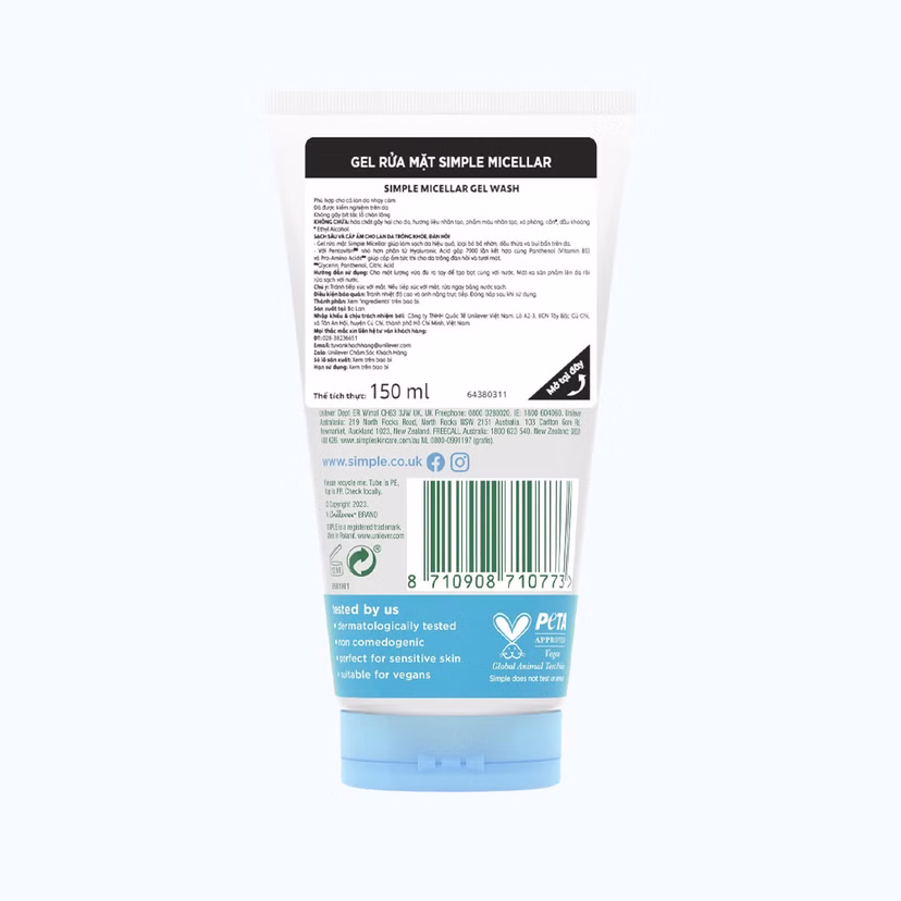 Sữa Rửa Mặt Simple Sạch Sâu Và Cấp Ẩm (Tuýp 150ml)