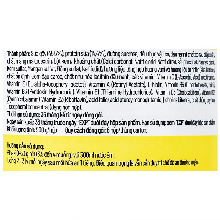 Bên cạnh đó, thành phần vitamin và khoáng chất như vitamin nhóm B, vitamin D, kẽm, sắt, magie, omega 3 cũng góp phần trong việc trao đổi chất, tăng sức đề kháng, giúp tăng cân hiệu quả.