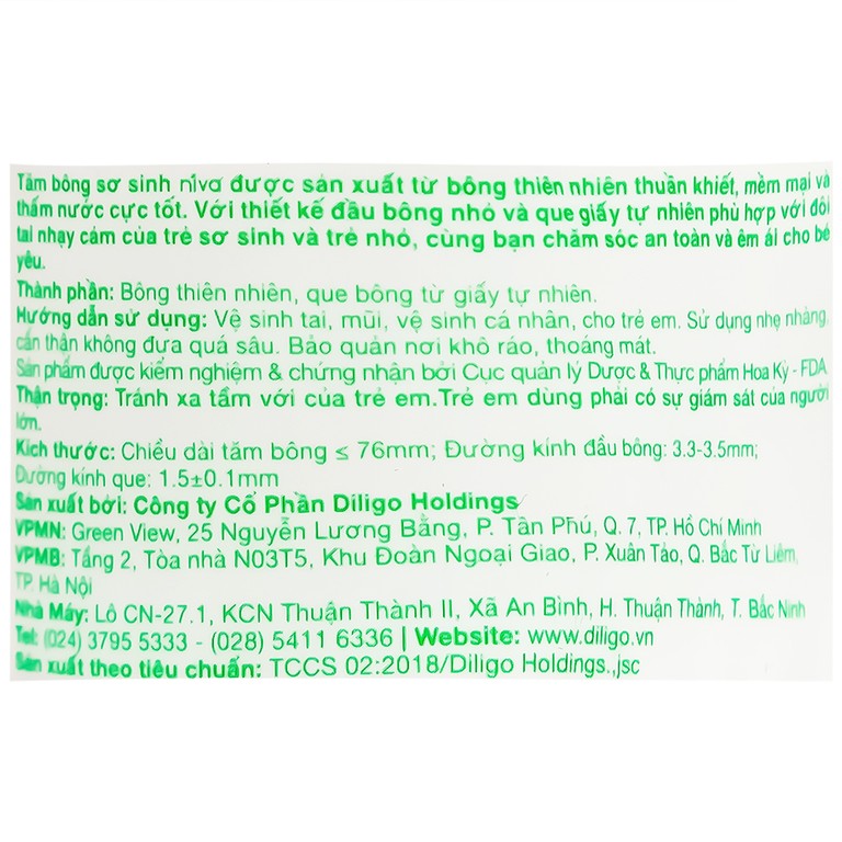 Thành phần của Tăm bông sơ sinh Niva