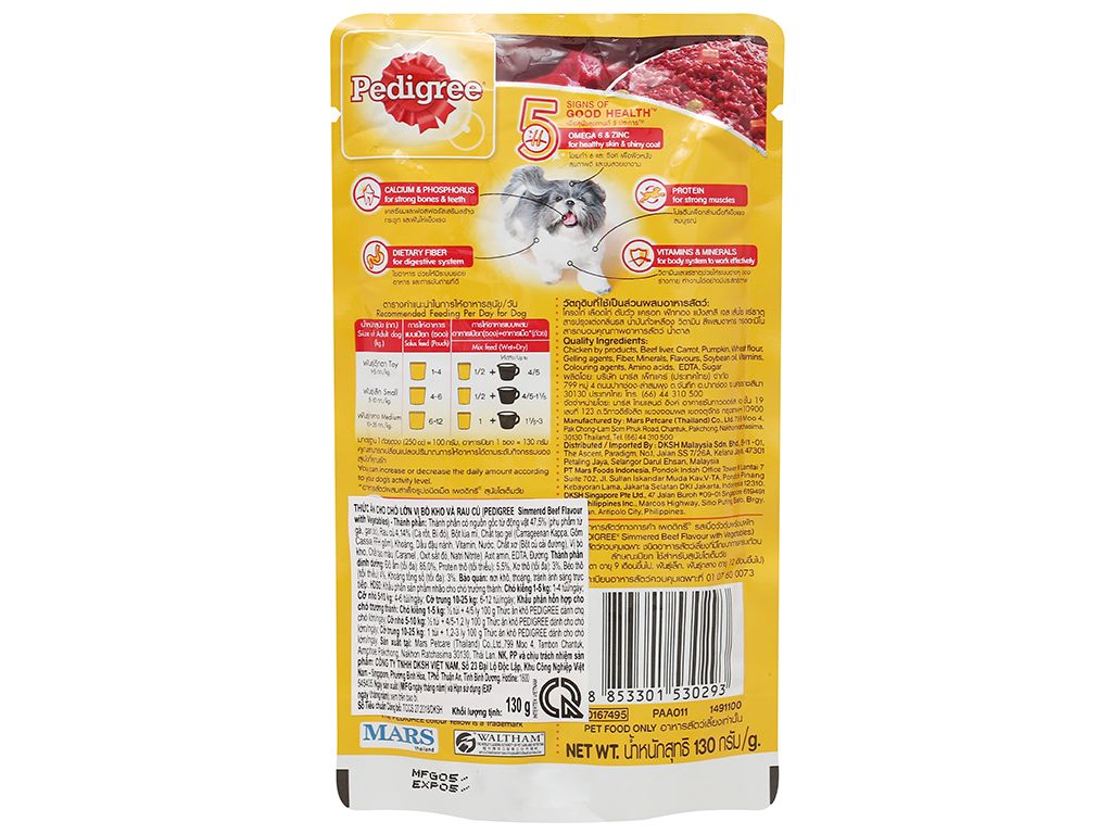 Thức ăn cho chó lớn Pedigree vị bò kho và rau củ túi 130g số lượng